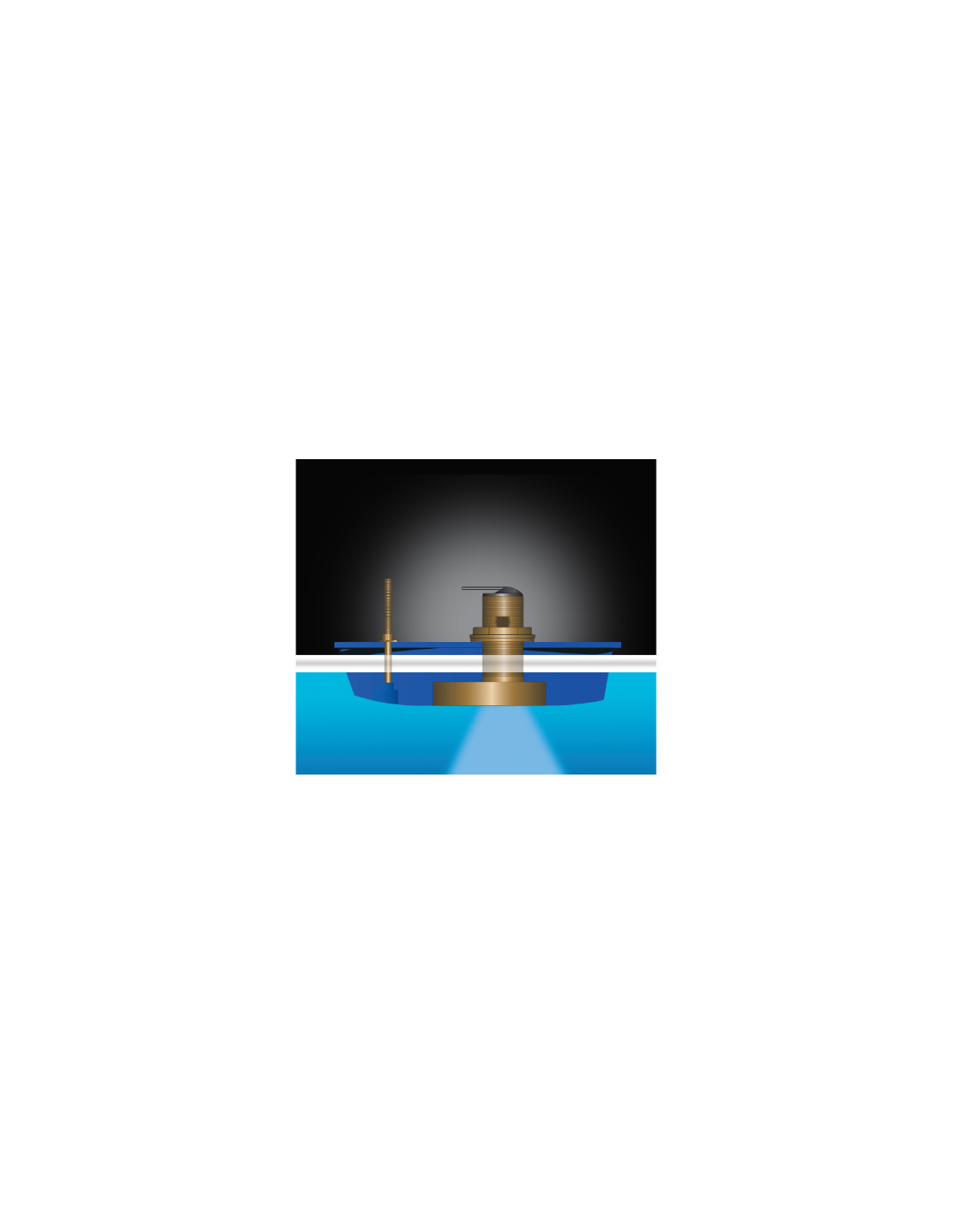 SONDE CHIRP simple bande 80-130kHz, 600W, traversante, Bronze, profondeur et température, angle faisceaux 24°/16°, 9m de câble - Adaptateur 10 Broches obligatoire pour sondeur CHIRP Furuno.