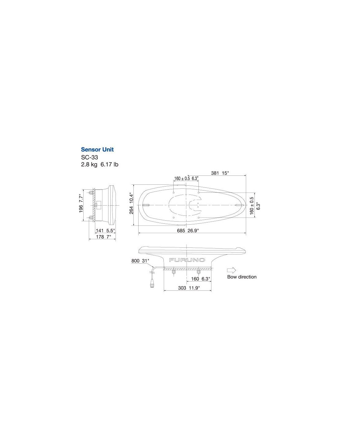 SC33 Compas Satellitaire 12-24Vcc Radôme 2 antennes • Rafraîchissement de la position 10Hz • NMEA2000 câble 6m